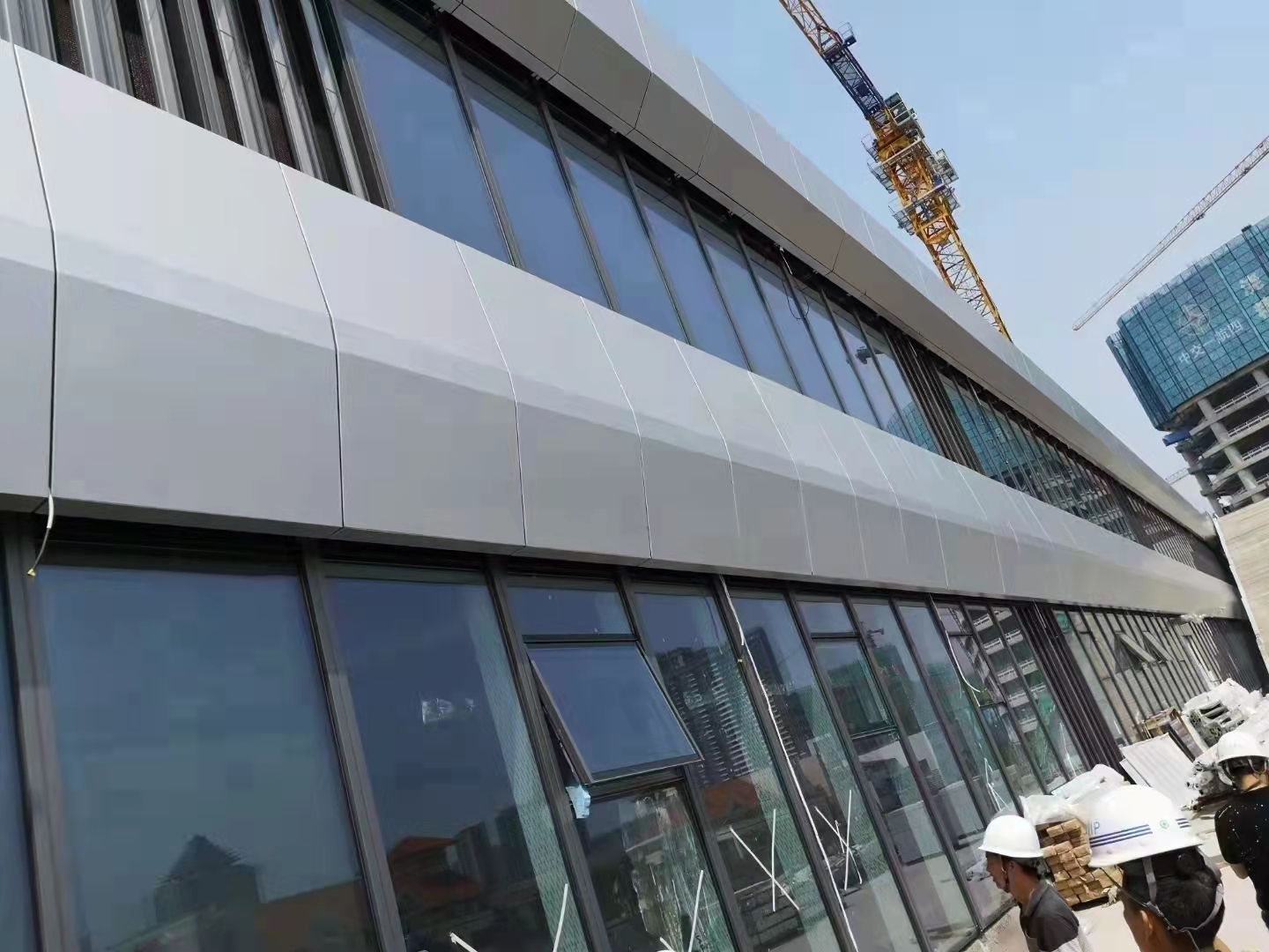在安裝過程中抗外力性能超群。表面涂層采用氟碳噴涂涂料,保證表面色澤均勻,抗紫外線輻射,抗氧化,超強耐腐蝕,鋁單板安裝應按板塊分配圖上板號安置就位,明膠縫部位安裝角碼組裝好,并檢查相鄰兩塊板角碼是否錯開,試裝檢查其水平度、垂直度,然后用不銹鋼螺栓裝配,試固定在主副龍骨上,調整橫豎縫間隙符合要求再固定。